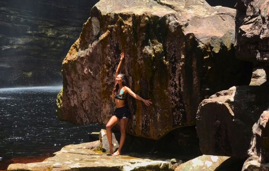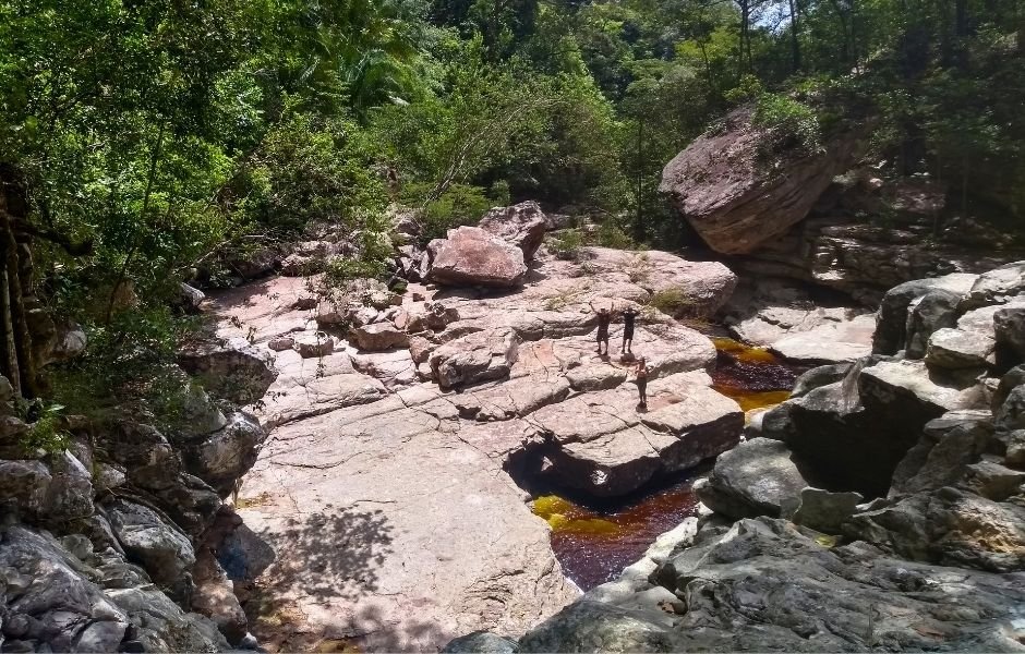 Trilha de 1h30, rio Timbozinho e cânions. Bate-volta para curtir o banho e o visual sem acampar.