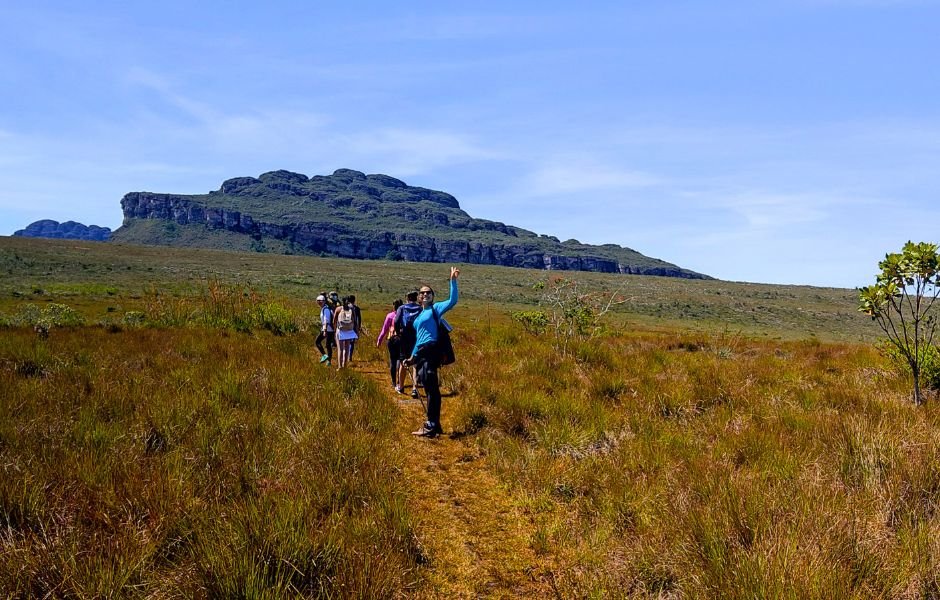 Um vasto planalto com vegetação de campo rupestre, nascentes e riachos de águas avermelhadas. A caminhada por aqui revela vistas panorâmicas espetaculares da imensidão da Chapada, conectando o caminhante à força e à vastidão da natureza.